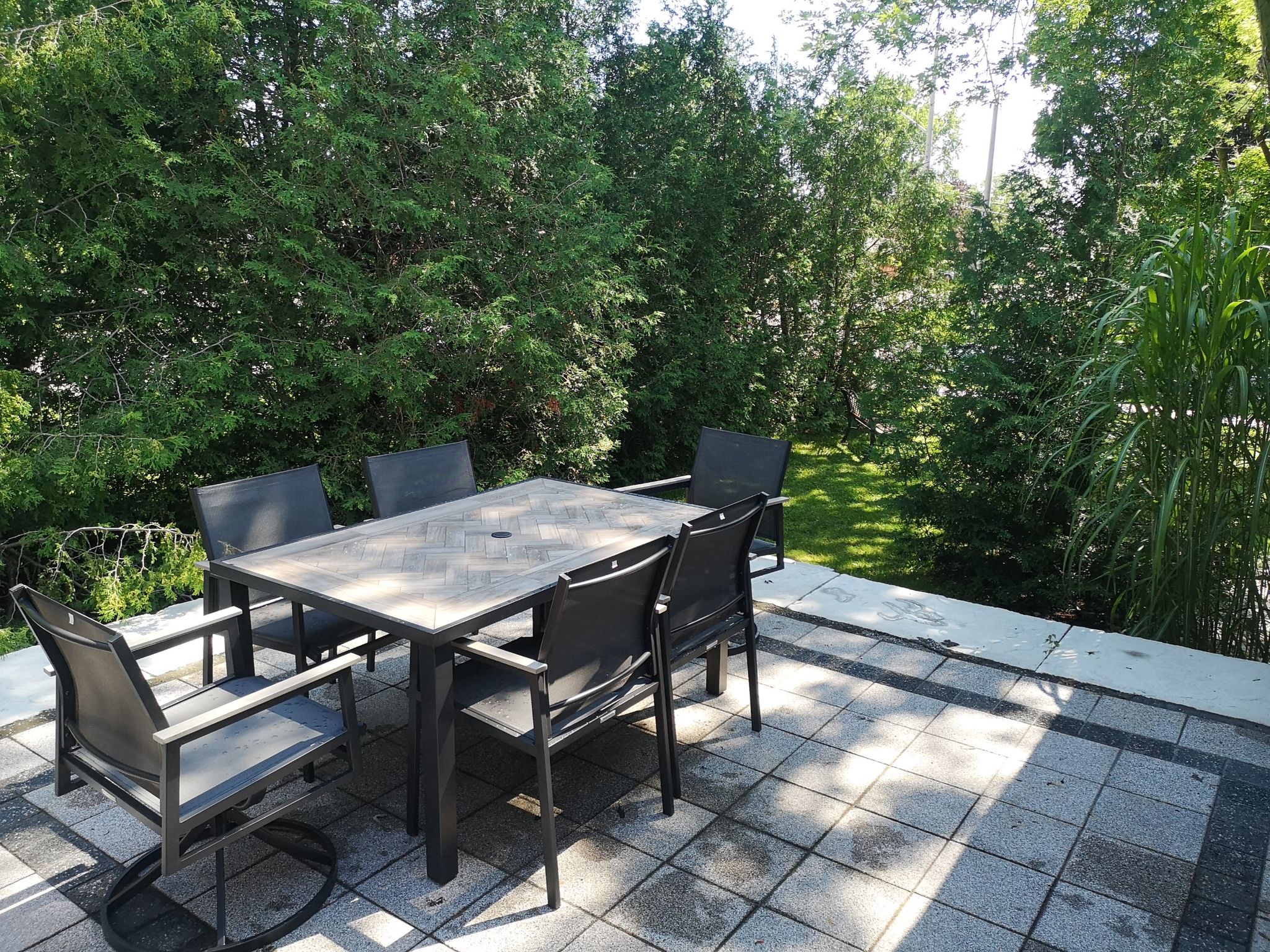 Step outside to enjoy a private outdoor patio surrounded by mature trees—perfect for morning coffee, evening meals, or simply relaxing in a peaceful setting.